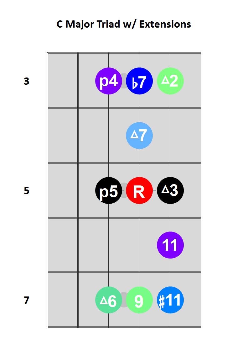 One last useful triad on strings 2/3/4. We all probably know this one, though I’ve never looked for the extensions until now. Knowing how to alter this simple bar is a great tool. Share this: Click to share on X (Opens in new window) X Click to share on Facebook (Opens in new window) Facebook Like Loading... Related Published by jmfreeland Musician, trader, coder, taker of pictures. View all posts by jmfreeland